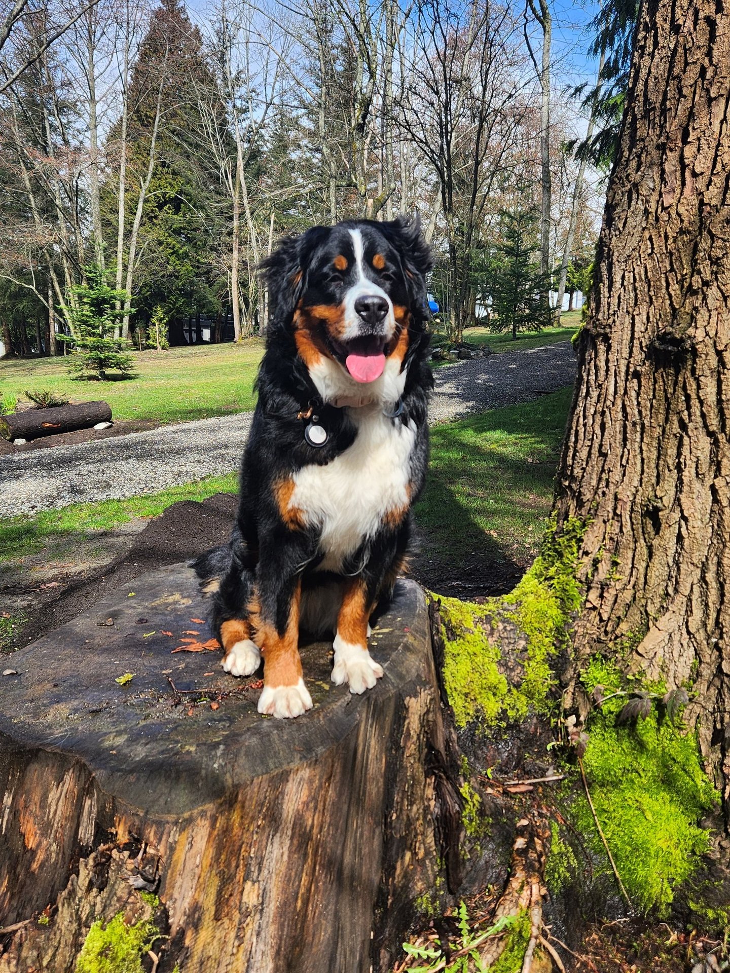 The Bernese Mountain Dog is a large and sturdy dog with a powerful physical structure that exudes strength and elegance.